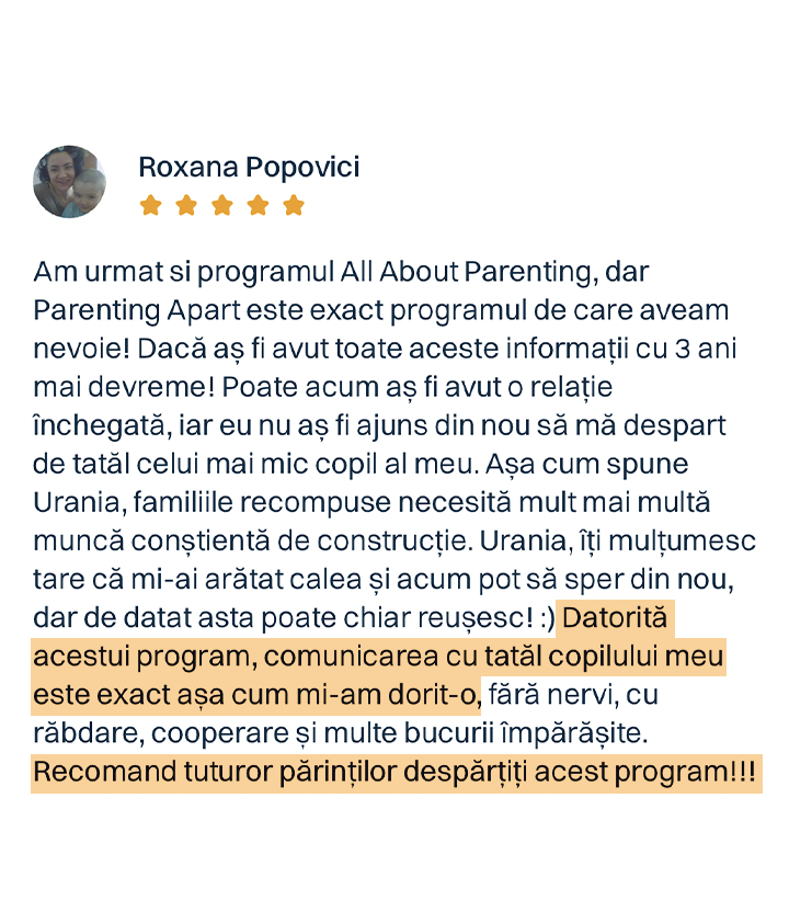Programul nr. #1 de parenting din Romania pentru părinți separați sau divorțați